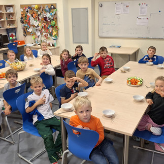 In den letzten Wochen erarbeiteten wir gemeinsam, wie wir alle gesund bleiben können. Erholung, Körperpflege, Bewegung und Sport und vor allem gesunde Ernährung waren unsere Schwerpunkte. Wir unterteilten Lebensmittel in gesund und ungesund, gestalteten gemeinsam ein Obst-Gemüse Plakat und bereiteten mithilfe von Frau Schlögl einen Obstsalat und Gemüsesticks vor. Die Kinder waren alle eifrig in der Küche tätig und bereiteten die Teller genüsslich zu, damit wir danach die gesunden Lebensmittel voller Genuss essen konnten.